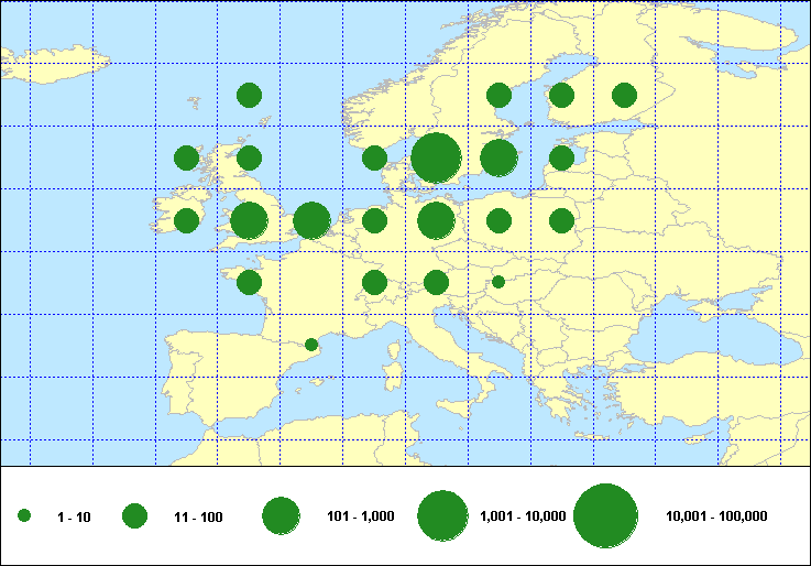 Numbers of Euring ringing recoveries