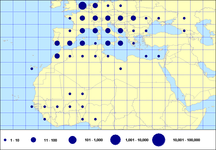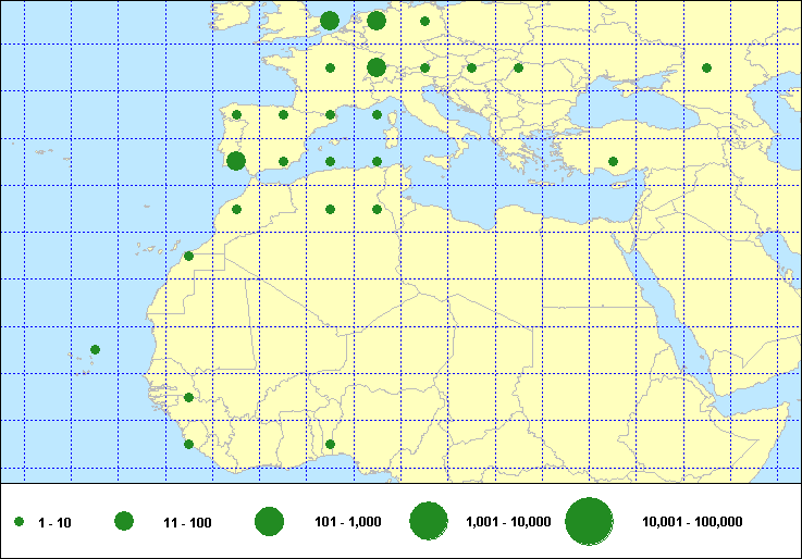 recoveries held in the EURING Data Bank. The contents of the EURING Data Bank may change, mostly as a result of recent data from ringing schemes. Numbers of records currently held may be slightly different from those quoted here.