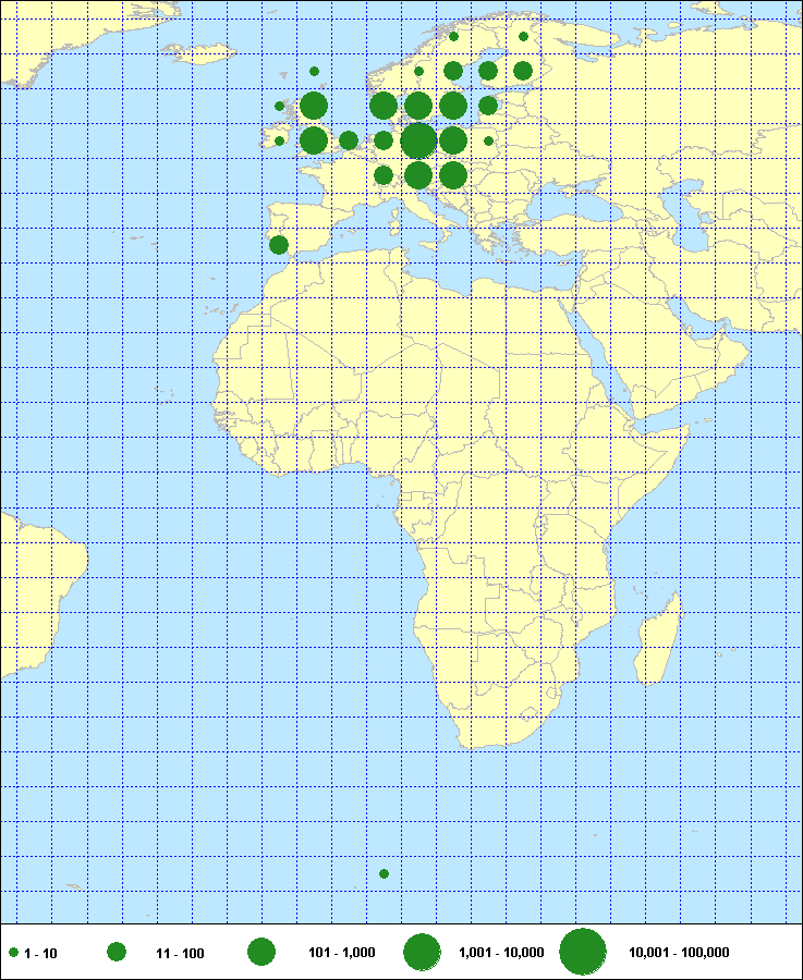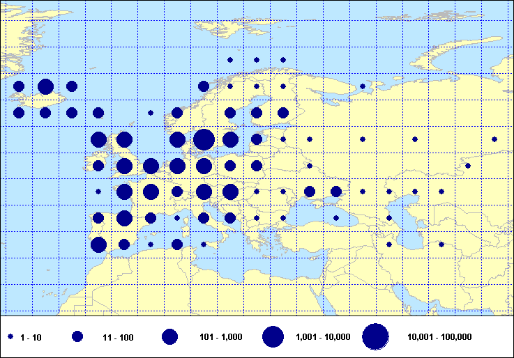 recoveries held in the EURING Data Bank. The contents of the EURING Data Bank may change, mostly as a result of recent data from ringing schemes. Numbers of records currently held may be slightly different from those quoted here.