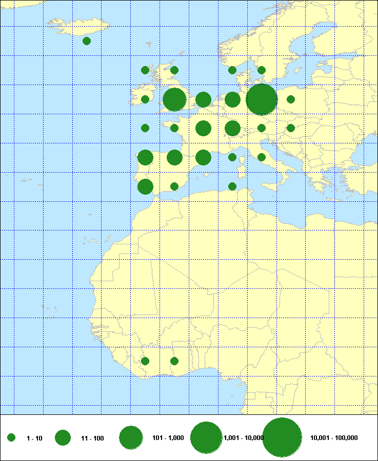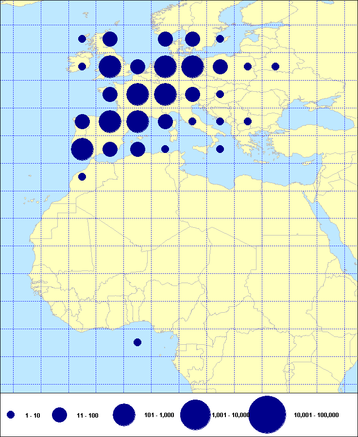 recoveries held in the EURING Data Bank. The contents of the EURING Data Bank may change, mostly as a result of recent data from ringing schemes. Numbers of records currently held may be slightly different from those quoted here.