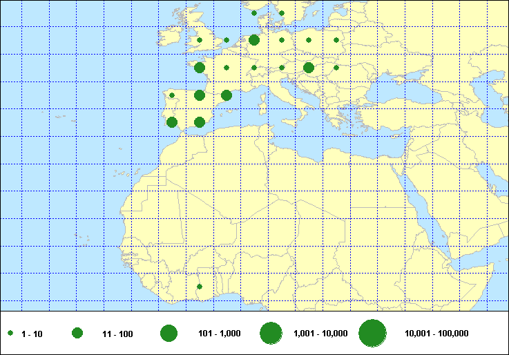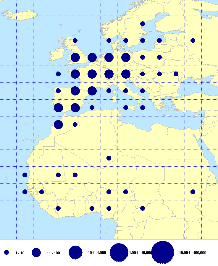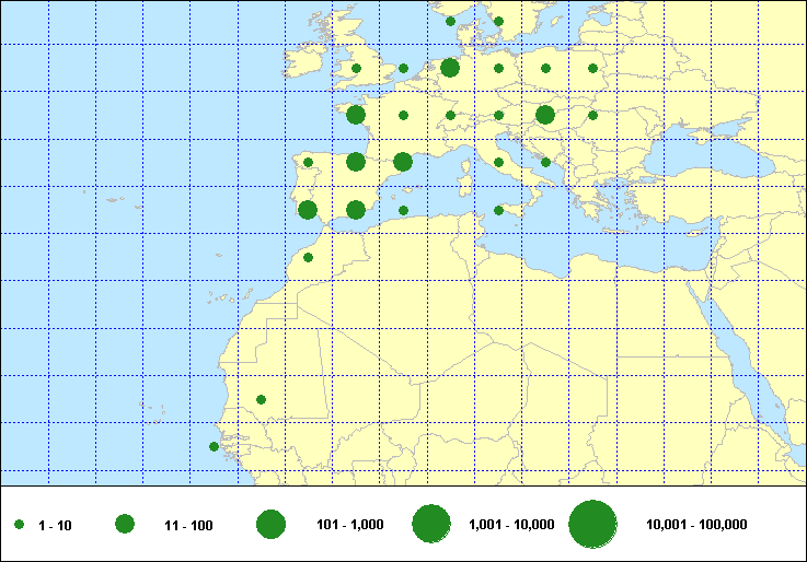 recoveries held in the EURING Data Bank. The contents of the EURING Data Bank may change, mostly as a result of recent data from ringing schemes. Numbers of records currently held may be slightly different from those quoted here.