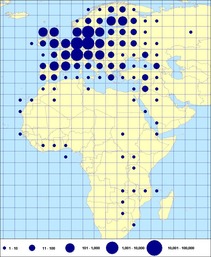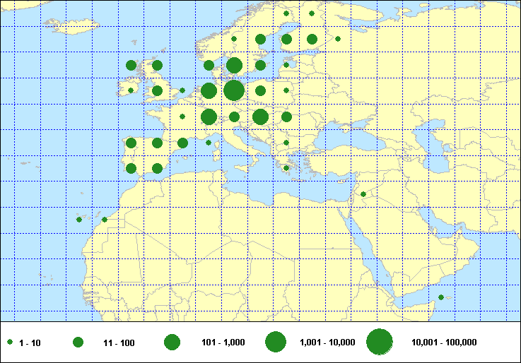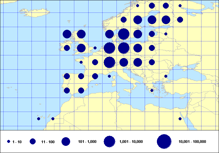 recoveries held in the EURING Data Bank. The contents of the EURING Data Bank may change, mostly as a result of recent data from ringing schemes. Numbers of records currently held may be slightly different from those quoted here.