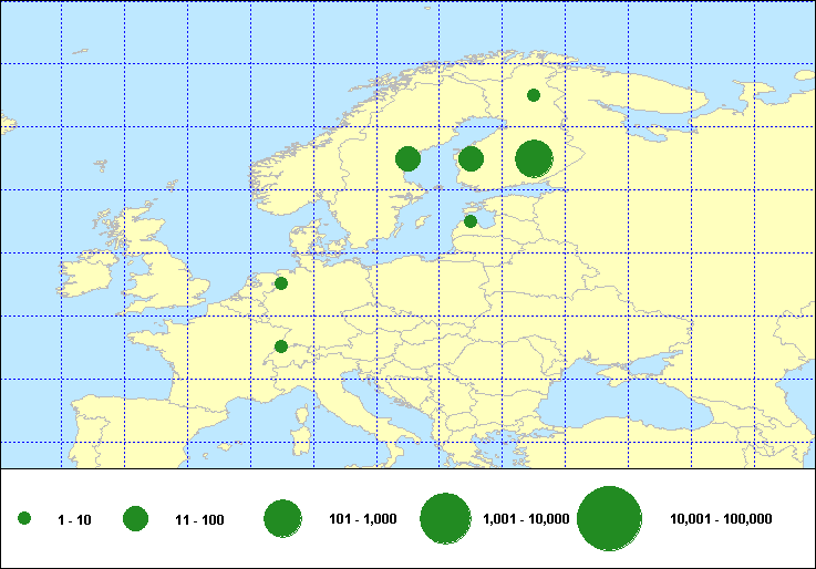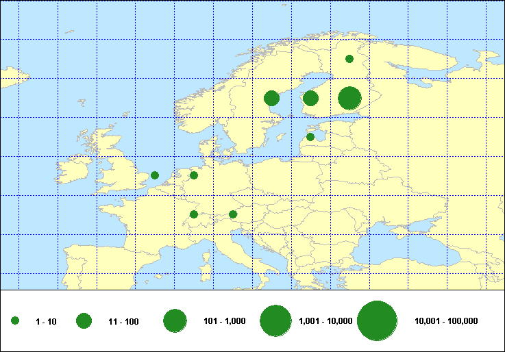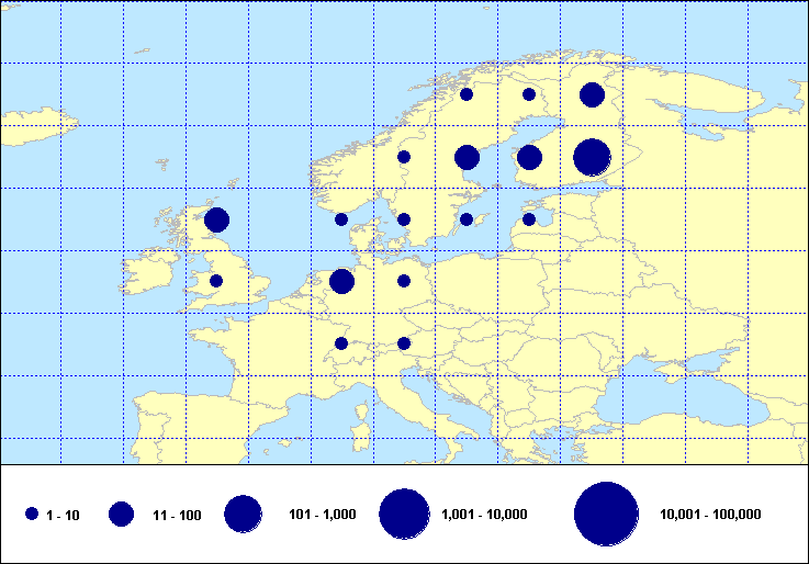 Numbers of Euring ringing recoveries