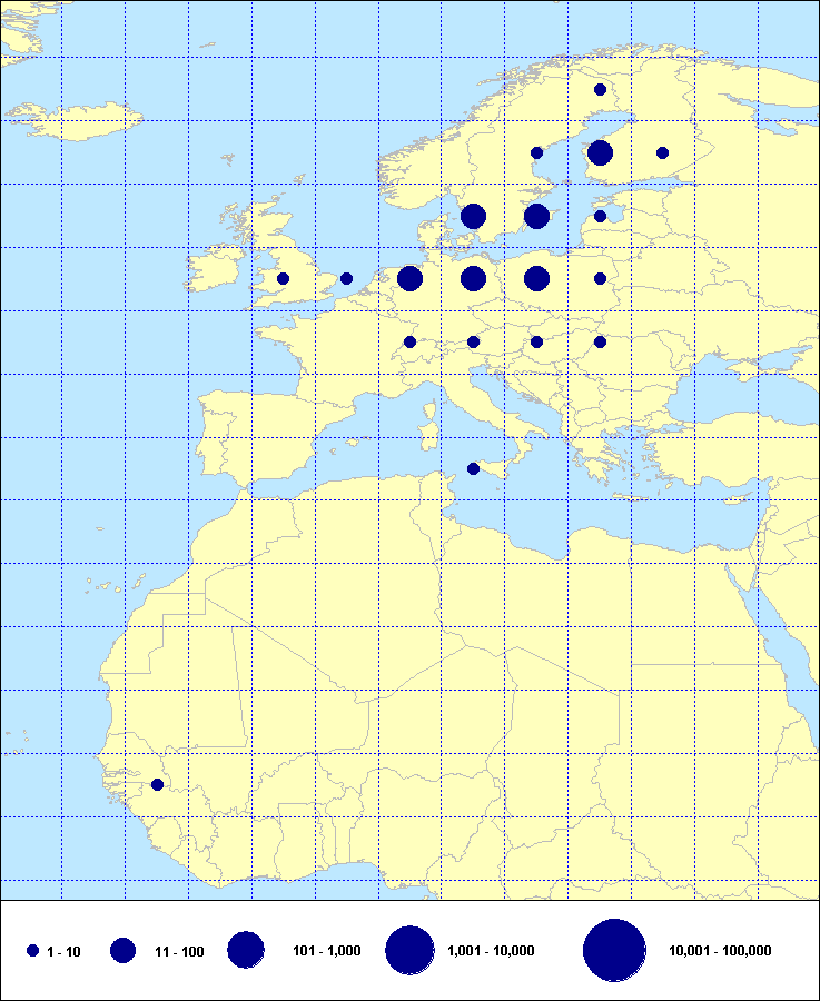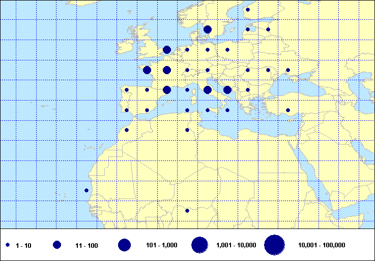 recoveries held in the EURING Data Bank. The contents of the EURING Data Bank may change, mostly as a result of recent data from ringing schemes. Numbers of records currently held may be slightly different from those quoted here.