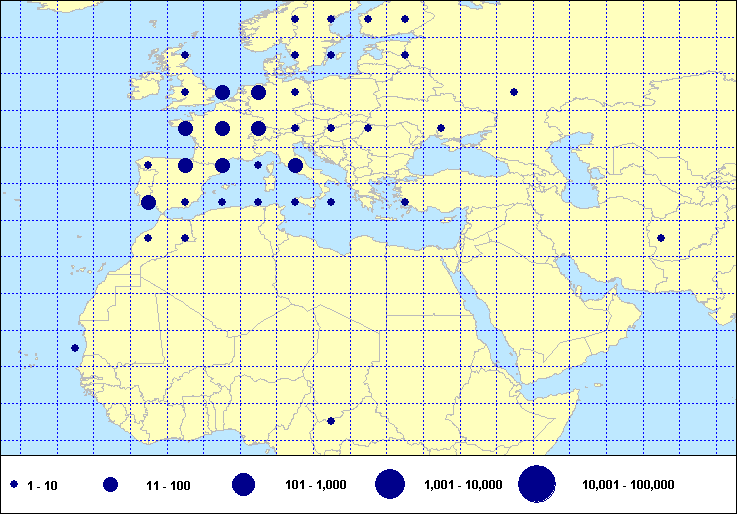 recoveries held in the EURING Data Bank. The contents of the EURING Data Bank may change, mostly as a result of recent data from ringing schemes. Numbers of records currently held may be slightly different from those quoted here.