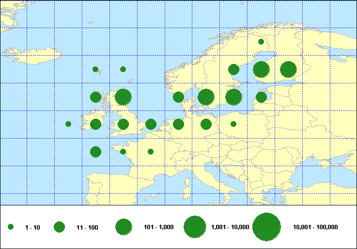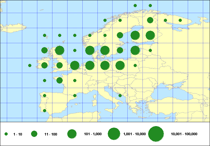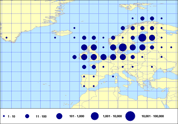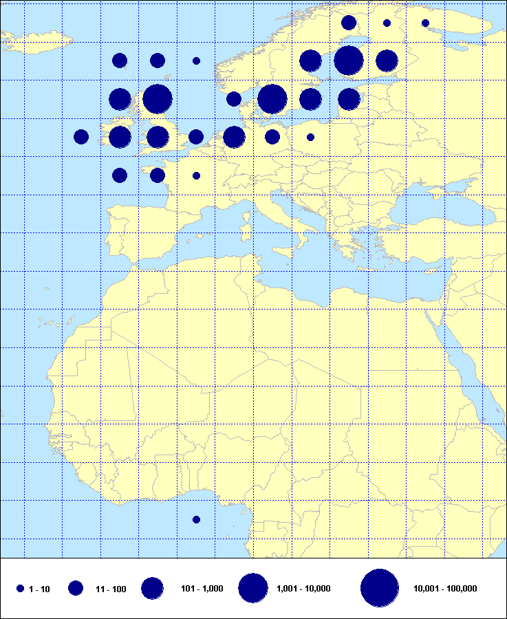 recoveries held in the EURING Data Bank. The contents of the EURING Data Bank may change, mostly as a result of recent data from ringing schemes. Numbers of records currently held may be slightly different from those quoted here.