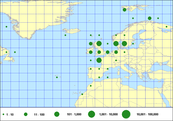recoveries held in the EURING Data Bank. The contents of the EURING Data Bank may change, mostly as a result of recent data from ringing schemes. Numbers of records currently held may be slightly different from those quoted here.