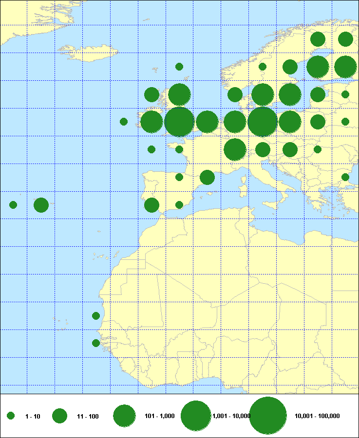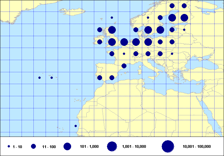 recoveries held in the EURING Data Bank. The contents of the EURING Data Bank may change, mostly as a result of recent data from ringing schemes. Numbers of records currently held may be slightly different from those quoted here.