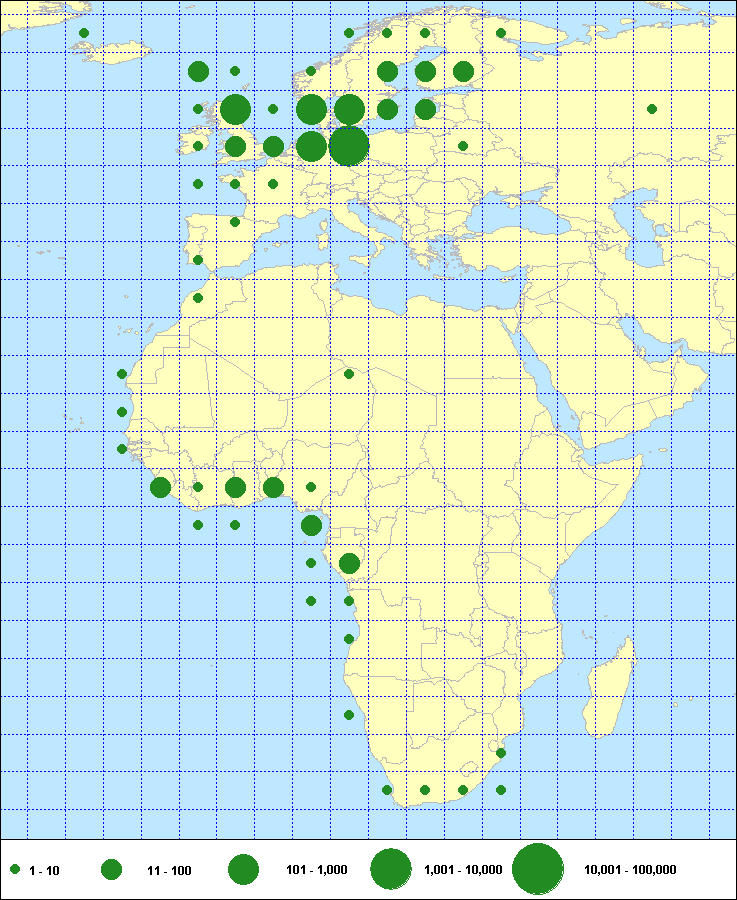 recoveries held in the EURING Data Bank. The contents of the EURING Data Bank may change, mostly as a result of recent data from ringing schemes. Numbers of records currently held may be slightly different from those quoted here.