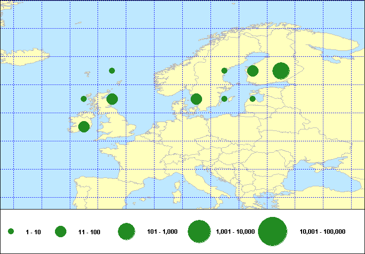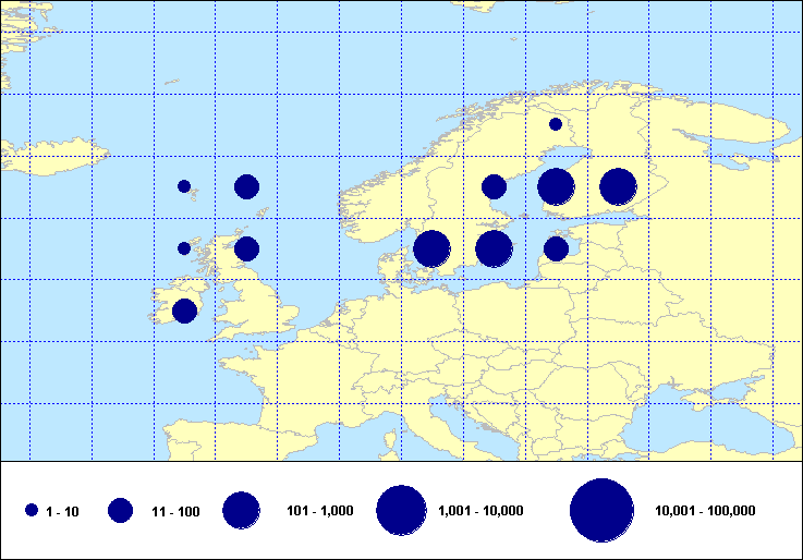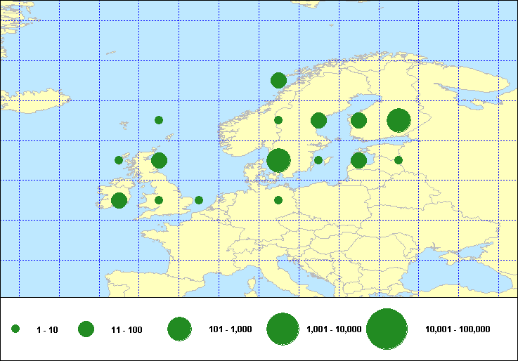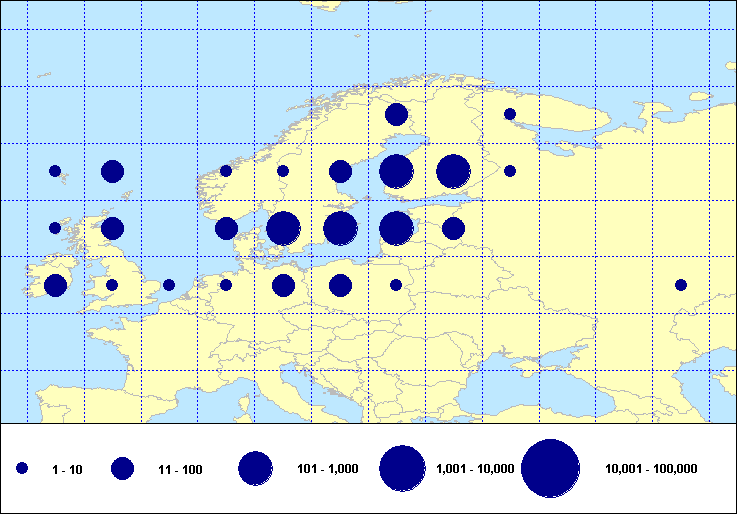recoveries held in the EURING Data Bank. The contents of the EURING Data Bank may change, mostly as a result of recent data from ringing schemes. Numbers of records currently held may be slightly different from those quoted here.