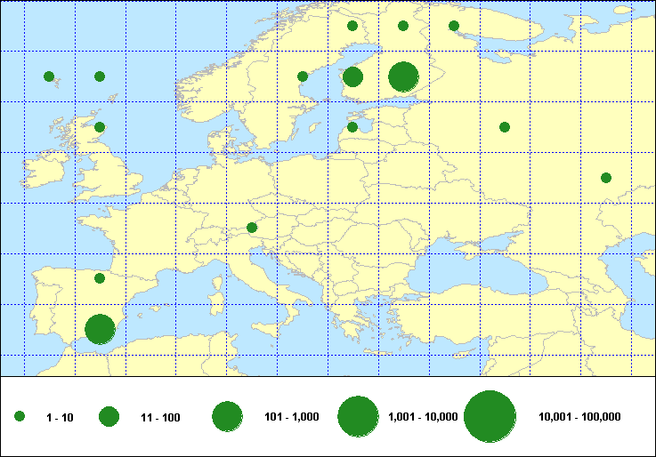 | This index should be cited as: du Feu, C.R., Joys, A.C., Clark, J.A., Fiedler, W., Downie, I.S., van Noordwijk, A.J., Spina, F., Wassenaar, R. & Baillie, S.R. (2009) EURING Data Bank geographical index 2009. (http://www.euring.org/edb). | | © European Union for Bird Ringing This site is hosted by the BTO on behalf of EURING. Click here to email webmaster | | | |