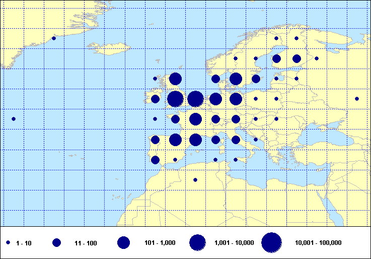 recoveries held in the EURING Data Bank. The contents of the EURING Data Bank may change, mostly as a result of recent data from ringing schemes. Numbers of records currently held may be slightly different from those quoted here.