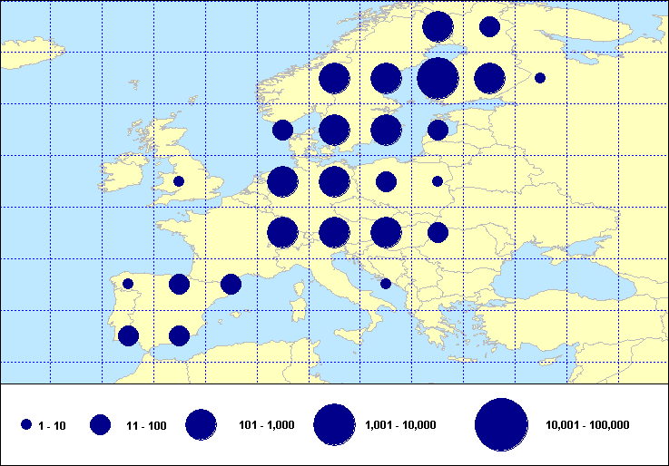 recoveries held in the EURING Data Bank. The contents of the EURING Data Bank may change, mostly as a result of recent data from ringing schemes. Numbers of records currently held may be slightly different from those quoted here.
