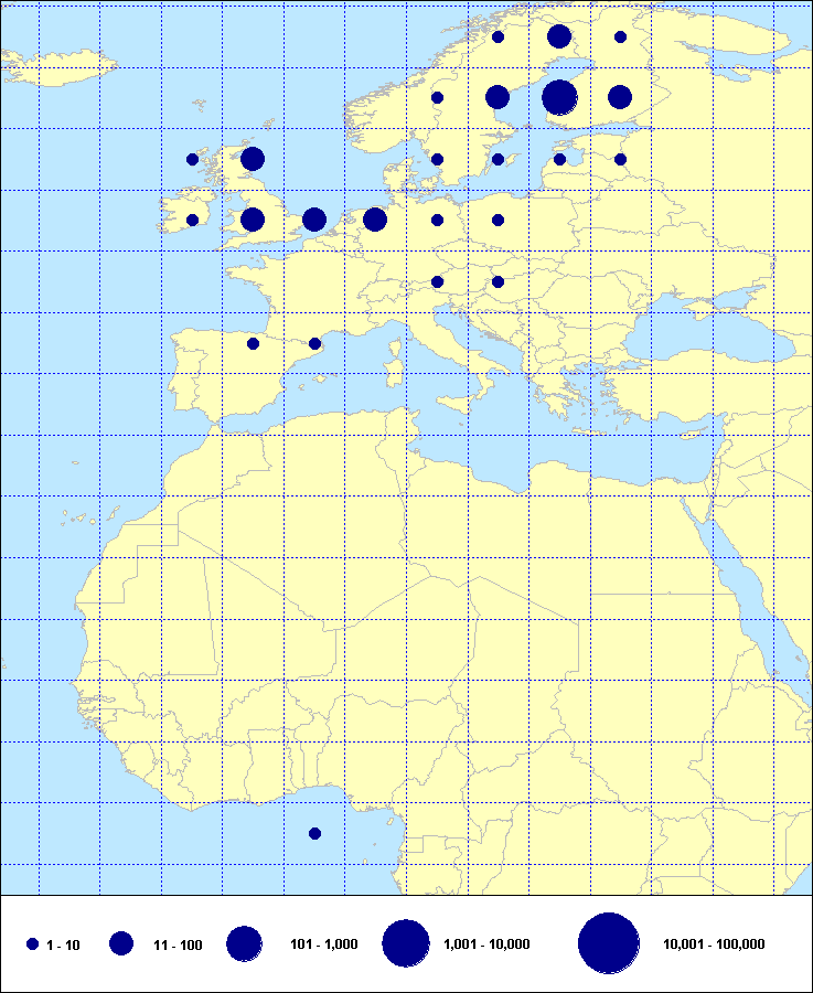 recoveries held in the EURING Data Bank. The contents of the EURING Data Bank may change, mostly as a result of recent data from ringing schemes. Numbers of records currently held may be slightly different from those quoted here.