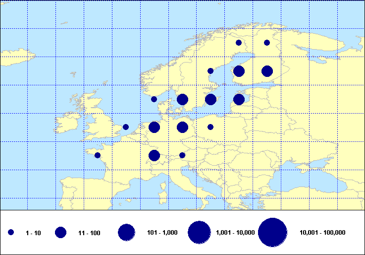 Numbers of Euring ringing recoveries