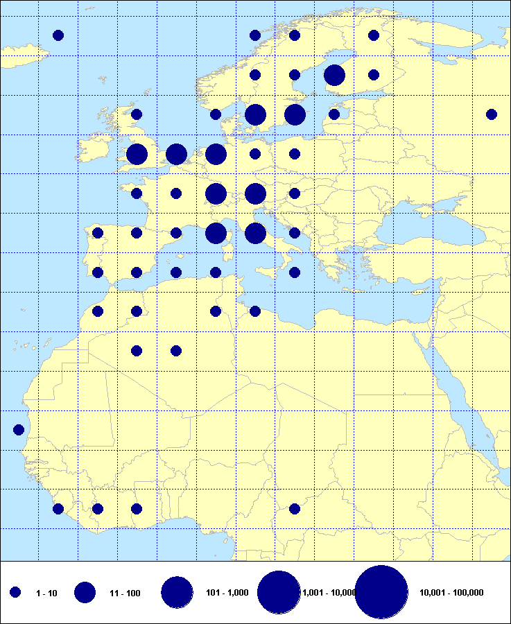 recoveries held in the EURING Data Bank. The contents of the EURING Data Bank may change, mostly as a result of recent data from ringing schemes. Numbers of records currently held may be slightly different from those quoted here.