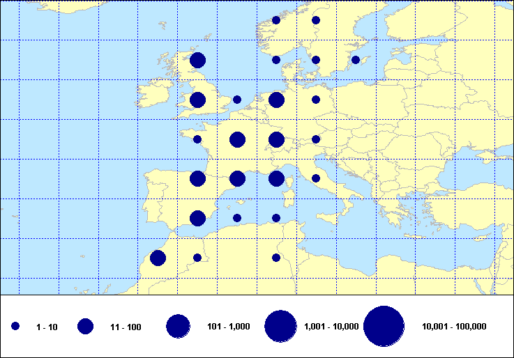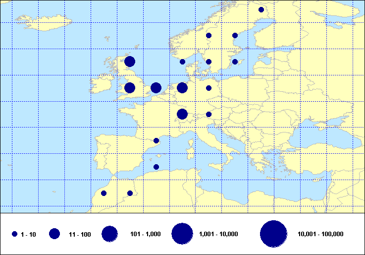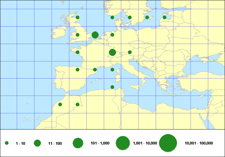 recoveries held in the EURING Data Bank. The contents of the EURING Data Bank may change, mostly as a result of recent data from ringing schemes. Numbers of records currently held may be slightly different from those quoted here.
