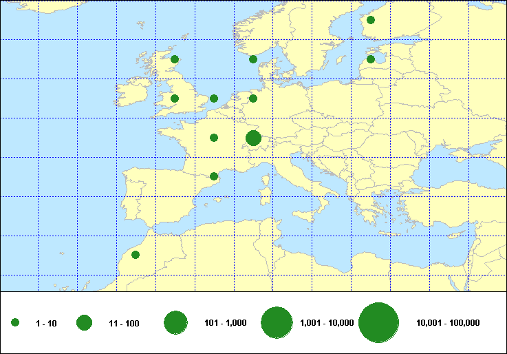 | This index should be cited as: du Feu, C.R., Joys, A.C., Clark, J.A., Fiedler, W., Downie, I.S., van Noordwijk, A.J., Spina, F., Wassenaar, R. & Baillie, S.R. (2009) EURING Data Bank geographical index 2009. (http://www.euring.org/edb). | | © European Union for Bird Ringing This site is hosted by the BTO on behalf of EURING. Click here to email webmaster | | | |