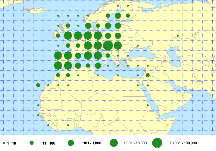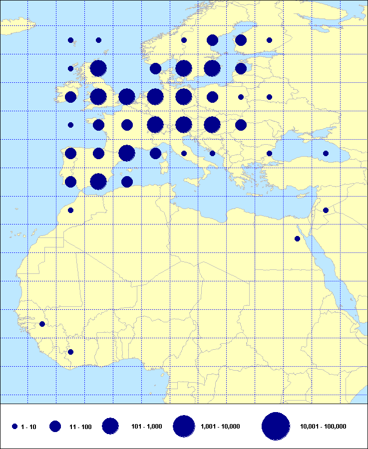 recoveries held in the EURING Data Bank. The contents of the EURING Data Bank may change, mostly as a result of recent data from ringing schemes. Numbers of records currently held may be slightly different from those quoted here.
