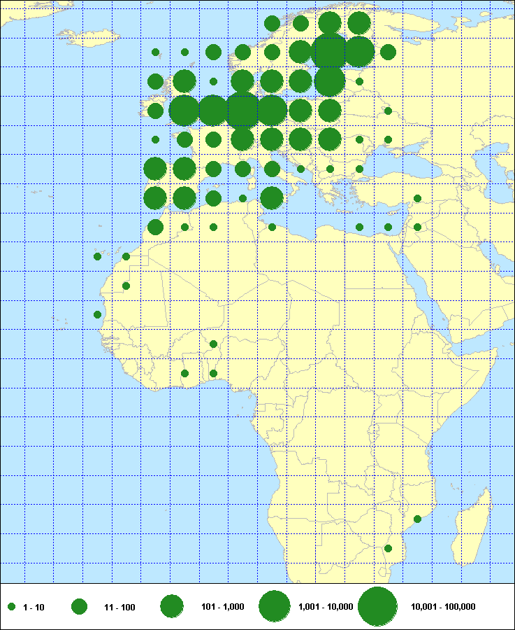 recoveries held in the EURING Data Bank. The contents of the EURING Data Bank may change, mostly as a result of recent data from ringing schemes. Numbers of records currently held may be slightly different from those quoted here.