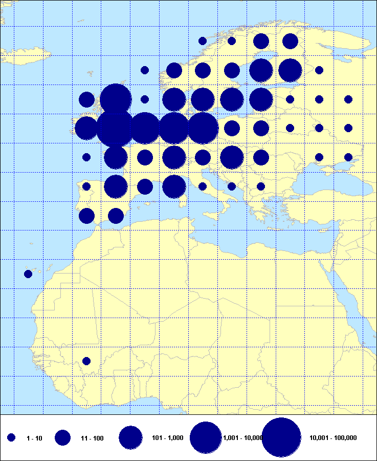recoveries held in the EURING Data Bank. The contents of the EURING Data Bank may change, mostly as a result of recent data from ringing schemes. Numbers of records currently held may be slightly different from those quoted here.