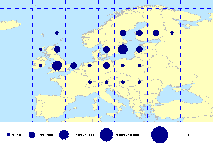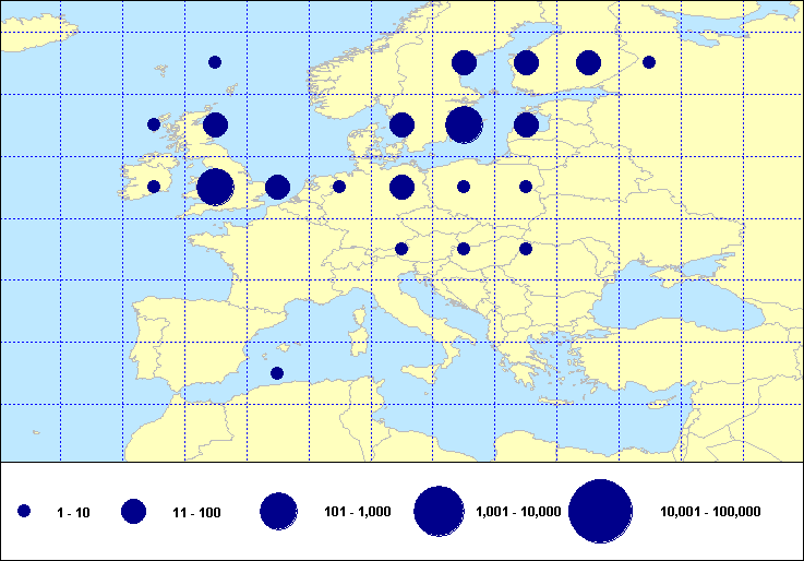 recoveries held in the EURING Data Bank. The contents of the EURING Data Bank may change, mostly as a result of recent data from ringing schemes. Numbers of records currently held may be slightly different from those quoted here.