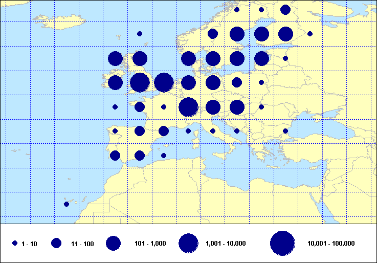 recoveries held in the EURING Data Bank. The contents of the EURING Data Bank may change, mostly as a result of recent data from ringing schemes. Numbers of records currently held may be slightly different from those quoted here.