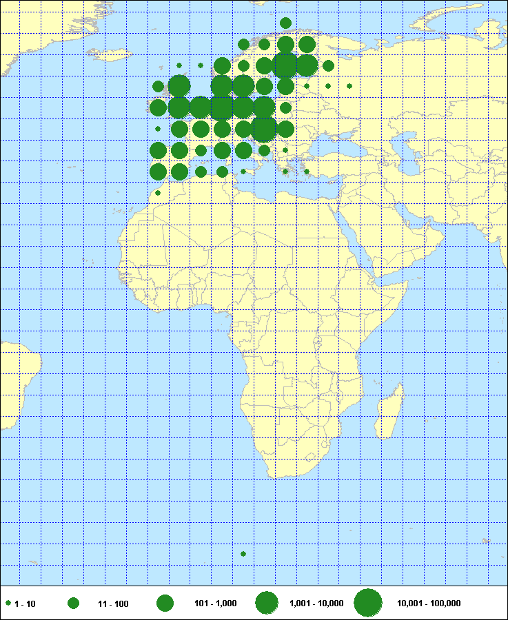 recoveries held in the EURING Data Bank. The contents of the EURING Data Bank may change, mostly as a result of recent data from ringing schemes. Numbers of records currently held may be slightly different from those quoted here.