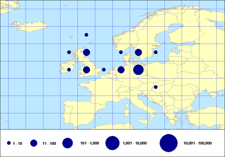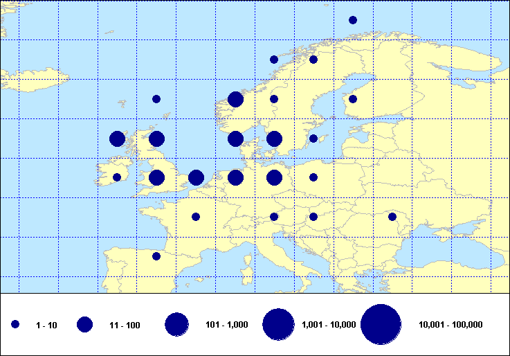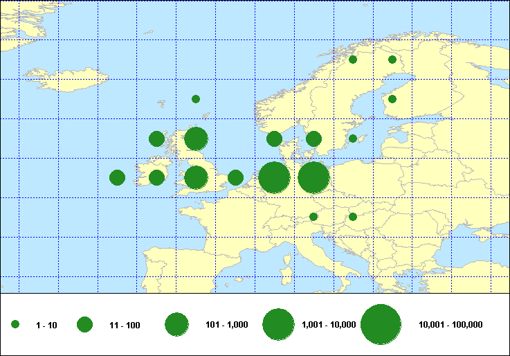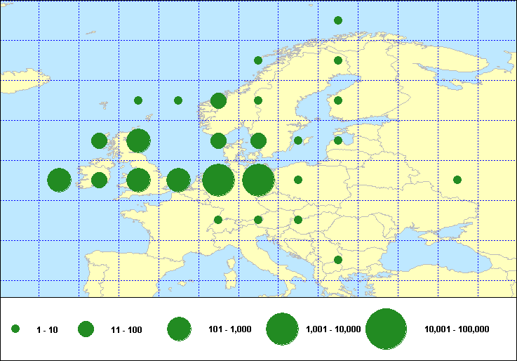 recoveries held in the EURING Data Bank. The contents of the EURING Data Bank may change, mostly as a result of recent data from ringing schemes. Numbers of records currently held may be slightly different from those quoted here.
