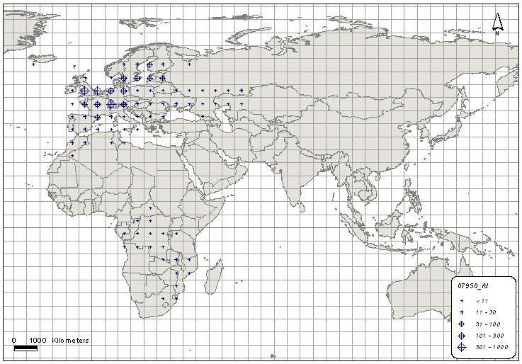This page contains a summary of the ringing recoveries held on the Euring Data Bank. |